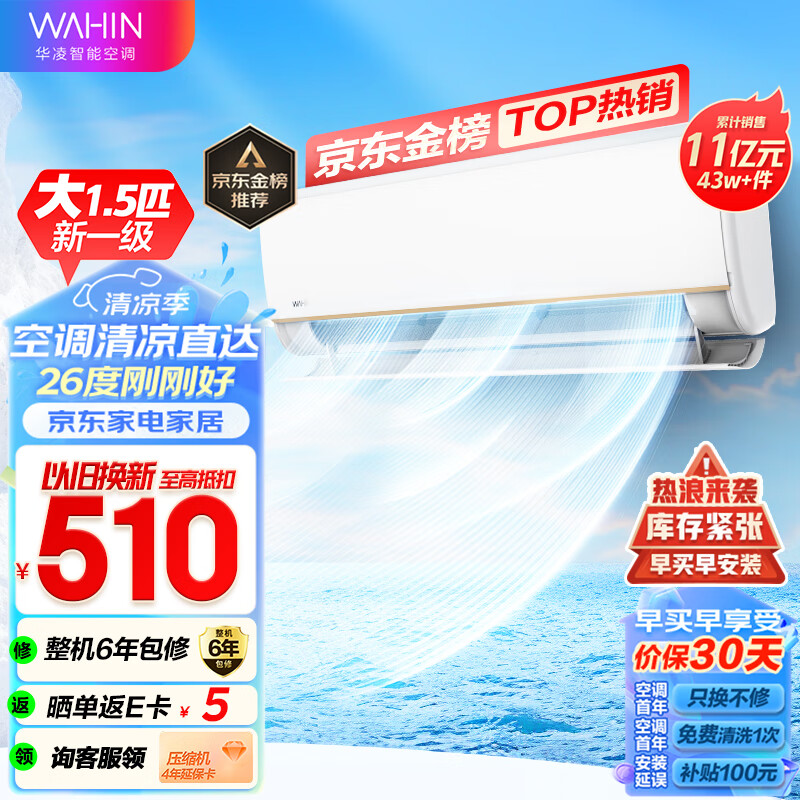华凌空调 大1.5匹 新一级能效 变频冷暖 超大风口客厅卧室空调挂机以旧换新 京东小家 KFR-35GW/N8HE1价格:2299.00元!