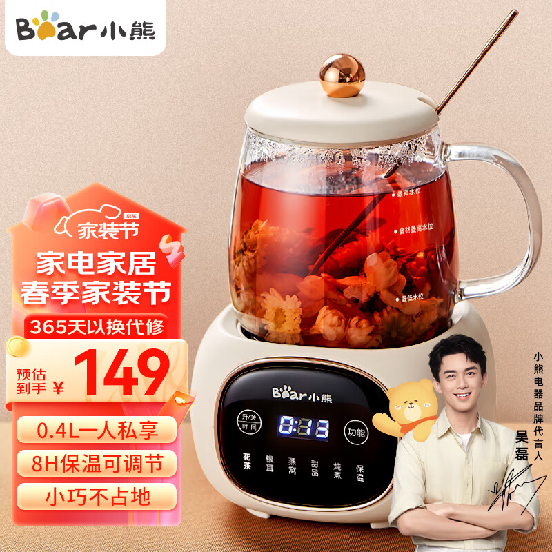 小熊(Bear) 迷你养生壶养生杯煮茶器煮花茶壶办公室小型养生杯0.4L全玻璃杯体 吴磊推荐 乳白色 0.4L价格:149.00元!