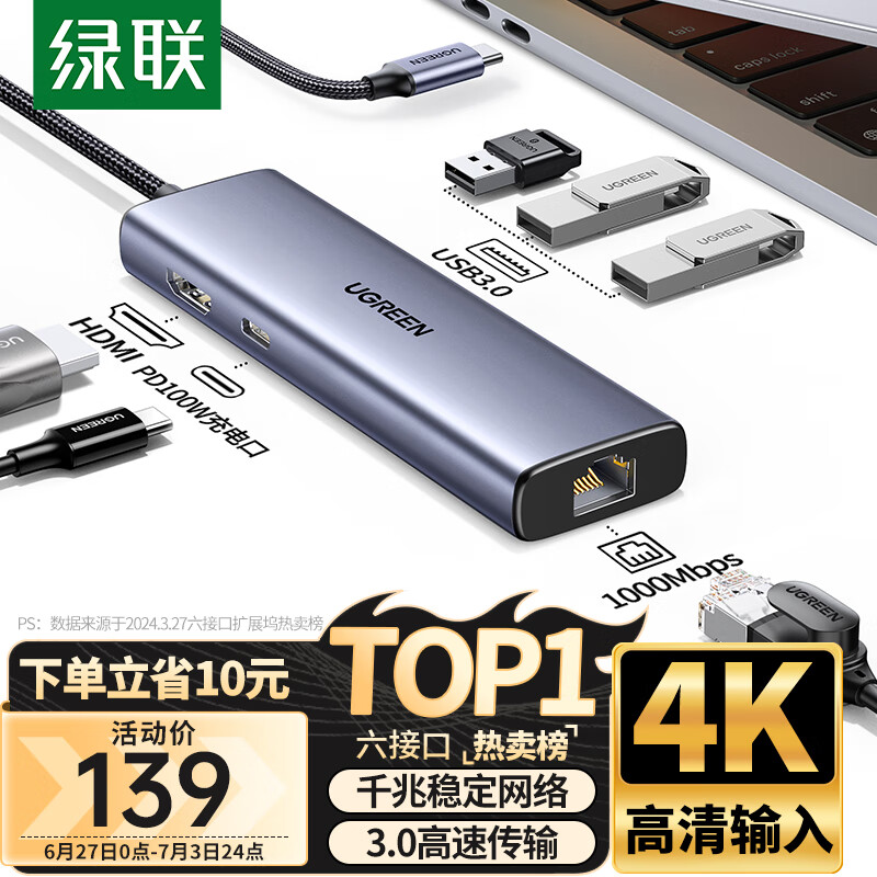 绿联(UGREEN)Type-C扩展坞网口千兆拓展坞USB分线器雷电4转HDMI网线转接头4K转换器适用苹果MacBook华为电脑价格:149.00元!