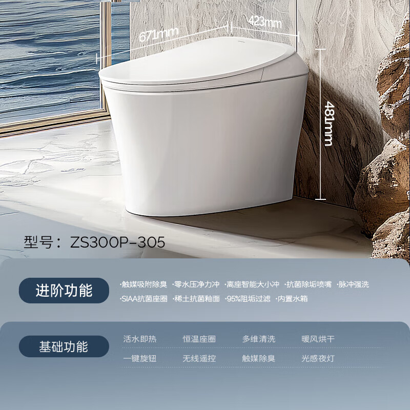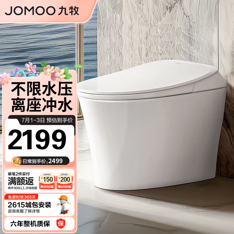 九牧(JOMOO)智能马桶带水箱不限水压智能大小冲智能坐便器ZS300P 305坑距价格:2349.00元!
