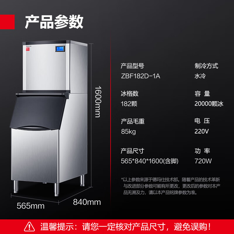 德玛仕(DEMASHI)商用制冰机 方块机商用大型奶茶店酒店后厨KTV酒吧大容量冰块机制冰器ZBF182D-1A 182冰格价格:6999.00元!