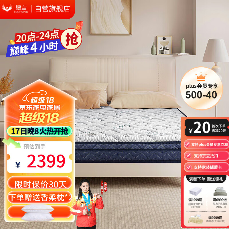 穗宝(SYMBOL)床垫 软硬双面3D椰棕乳胶整网弹簧床垫 恒感5G·芯悦 1.5米*2米价格:2849.00元!