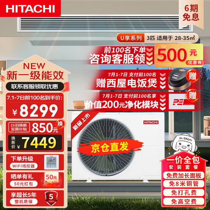 日立(HITACHI)中央空调风管机一拖一U享3匹家用嵌入式空调一价全包1级能效冷暖全直流变频京仓发货RPIZ-72HDQ1/P价格:8799.00元!