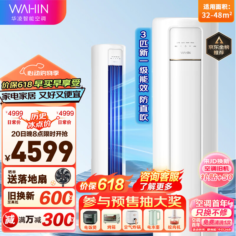 华凌空调3匹新一级能效变频冷暖柜机超大风口高温蒸汽自洁客厅立式APP智控以旧换新KFR-72LW/N8HB1A价格:4599.00元!