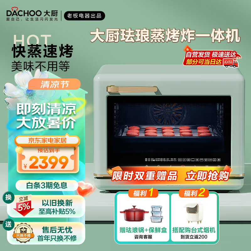 大厨老板蒸烤炸一体机蒸烤箱家用台式一体机DB610多功能专业电烤箱独立控温价格:2299.00元!