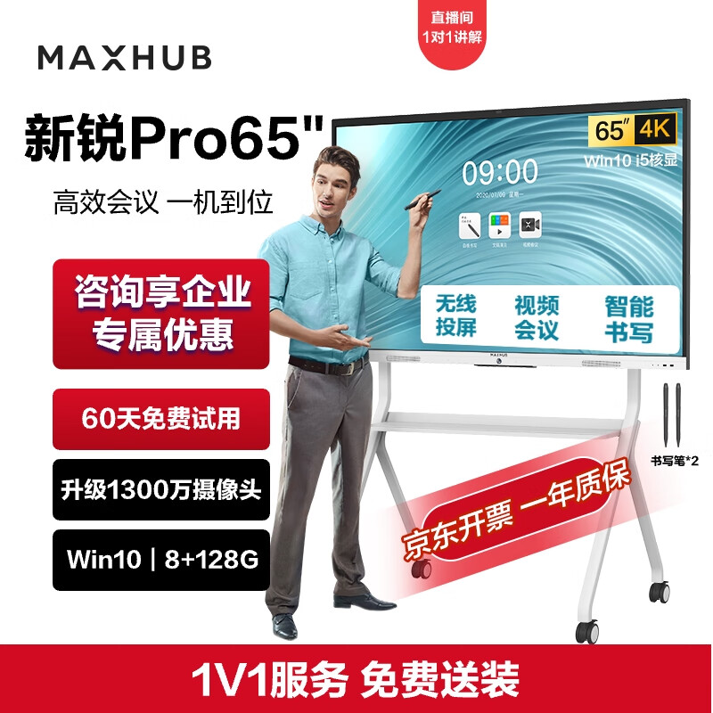 maxhub会议平板一体机触摸屏65英寸视频会议投屏4K电子白板办公教学商用智慧企业采购显示屏新锐Pro套装价格:11539.00元!