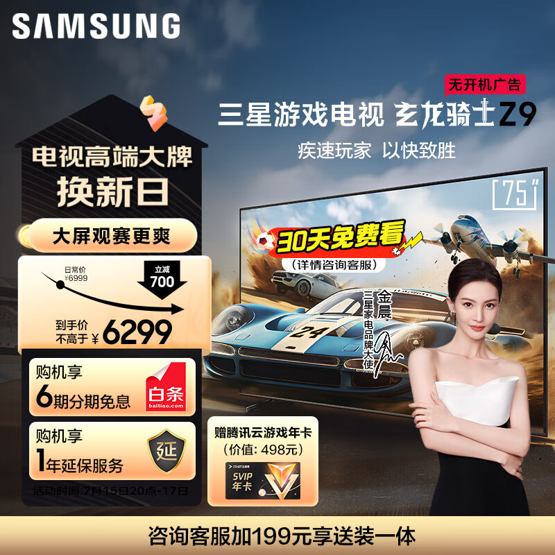 三星(SAMSUNG)玄龙骑士Z9 75英寸 3 64G 专业游戏电视 5.8ms 低延迟 无开机广告 UA75ZU9000JXXZ【欧洲杯】价格:6299.00元!