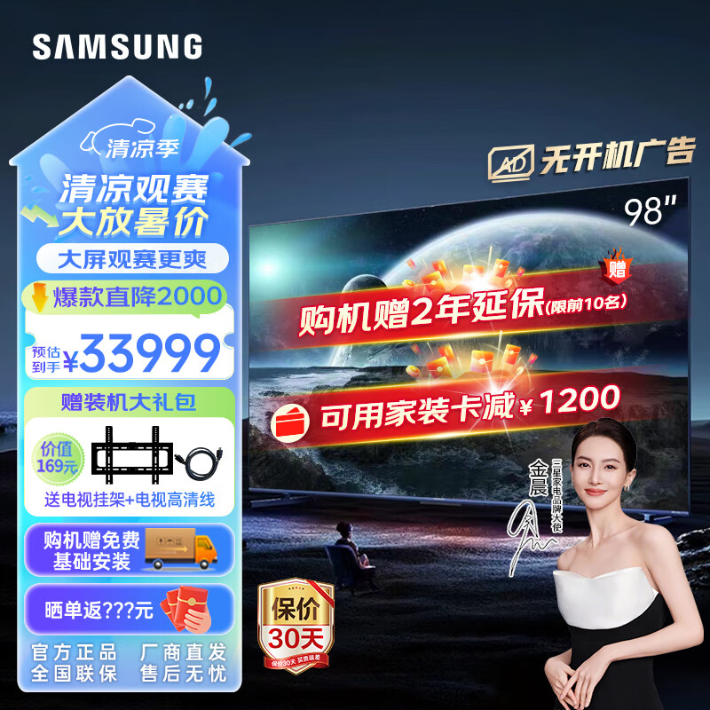 三星(SAMSUNG)98Q80Z 98英寸QLED量子点 AI智能电视120Hz高刷 家用会议巨幕平板液晶电视 QA98Q80ZAJXXZ 100价格:36999.00元!
