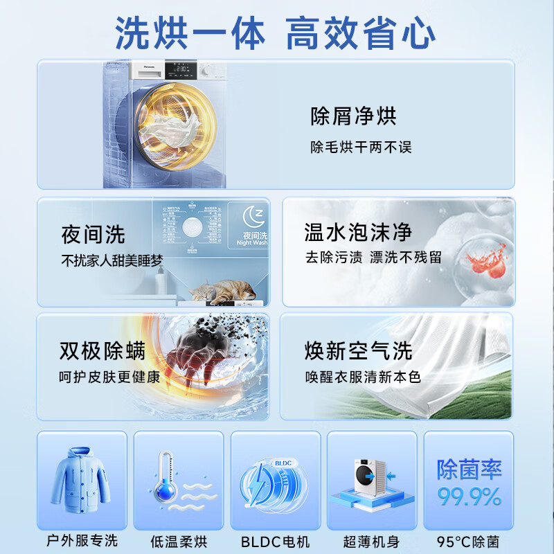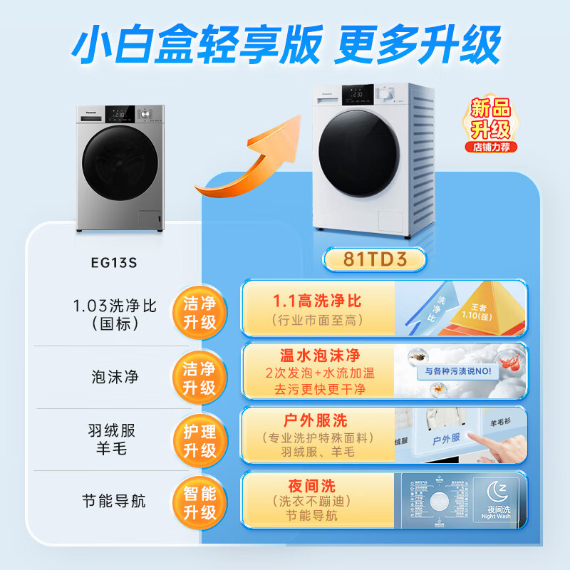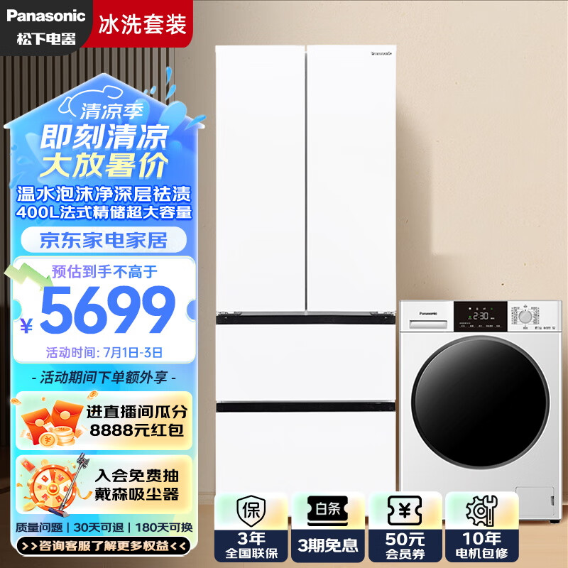 松下(Panasonic)冰洗套装 10kg滚筒洗烘一体洗衣机 小白盒 温水泡沫净+400升四门法式冰箱 81TD3+JD40WSA-W价格:6329.00元!