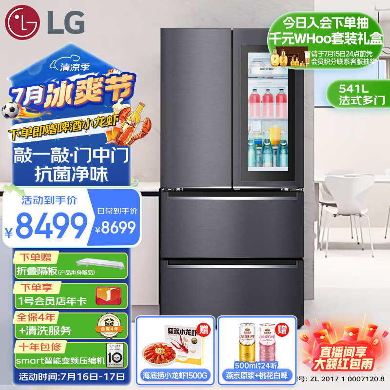 LG敲一敲 门中门系列 法式多门冰箱 541升大容量家用电冰箱 变频风冷无霜抗菌净味冰箱 F532MMC78B黑价格:8499.00元!