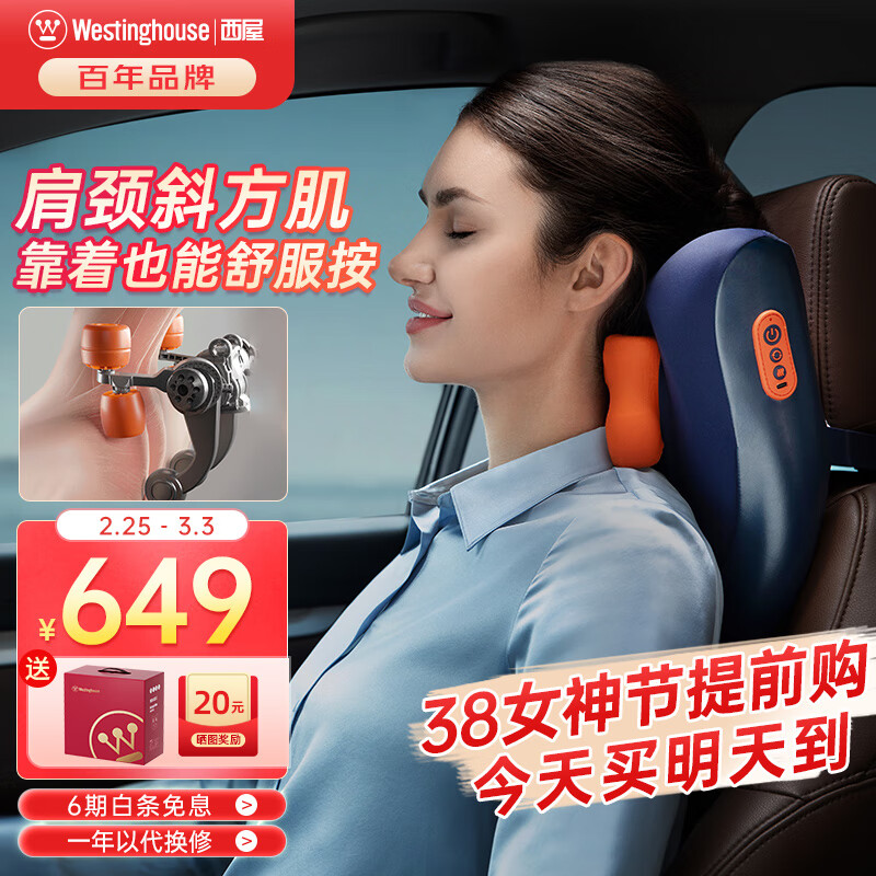 西屋BX3-2代颈椎按摩器肩颈按摩器斜方肌颈部按摩仪腰部按摩靠垫生日三八女神节礼物礼盒送女朋友妈妈 深邃蓝 节日礼物送父母男女友价格:1099.00元!