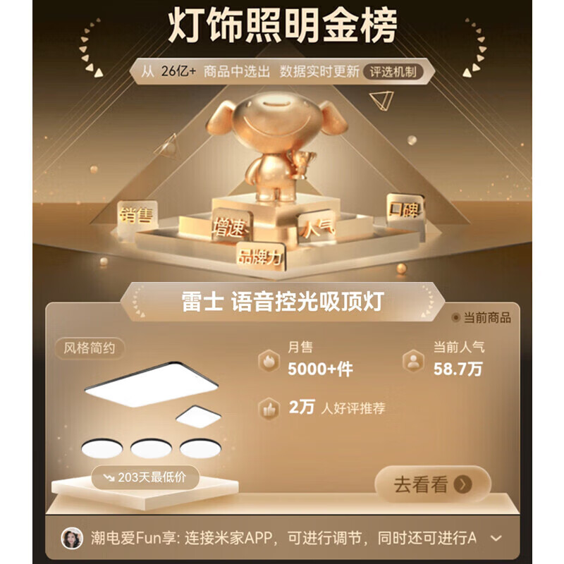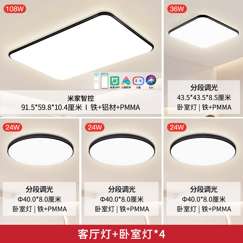 雷士(NVC)吸顶灯客厅大灯米家智能现代简约风卧室led照明灯具套餐黑色极光S价格:1299.00元!