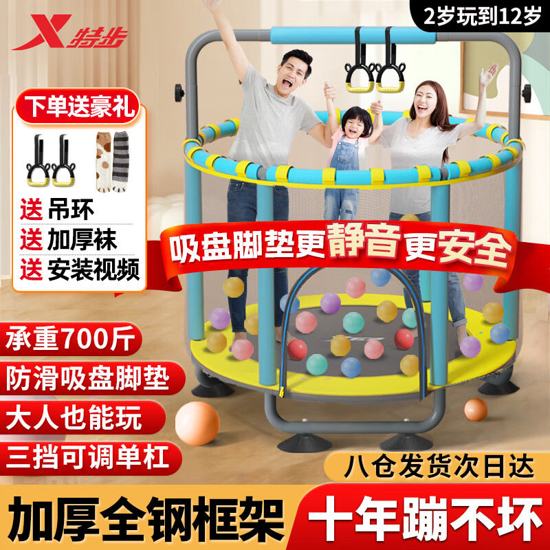 特步(XTEP)蹦蹦床跳跳床儿童家用室内宝宝弹单杠训练运动小孩成人亲子家庭价格:379.00元!