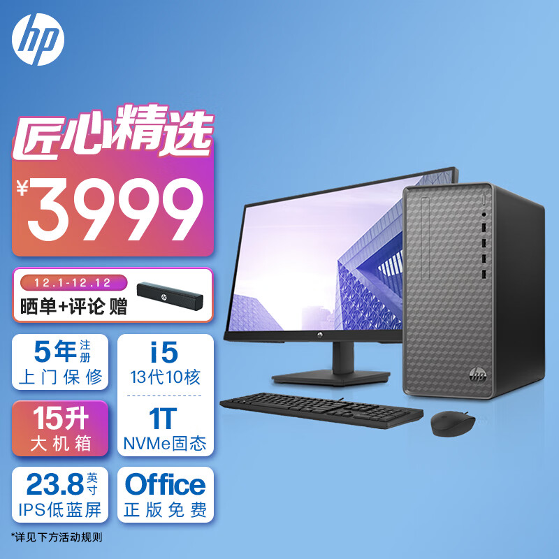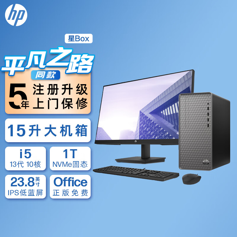 惠普HP 星Box商务办公台式电脑主机大机箱(13代i5-13400 16G 1TB大容量高速固态硬盘 注册五年上门)+23.8英寸价格:3999.00元!
