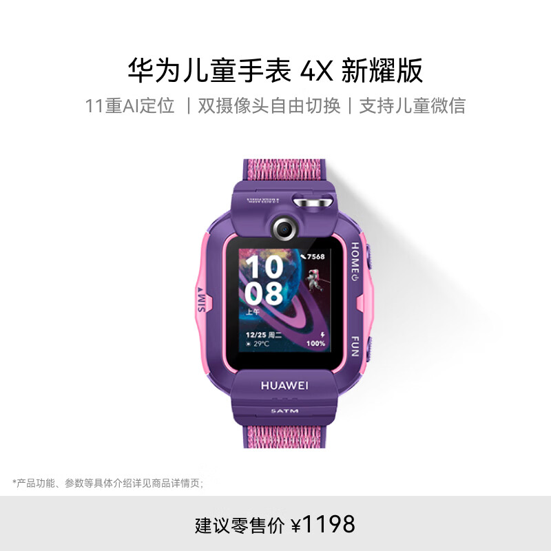 华为儿童手表 4X 新耀款华为手表智能手表支持儿童微信电话星云紫价格:898.00元!