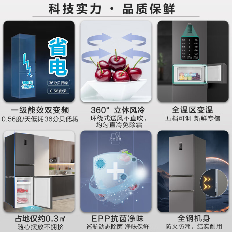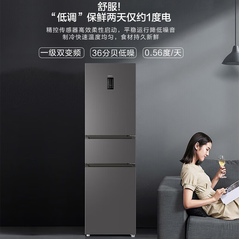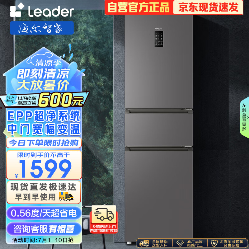 Leader 海尔出品218升一级能效风冷无霜三门变温EPP净味小型家用租房小冰箱 BCD-218WGLC3D7S9U1价格:1599.00元!