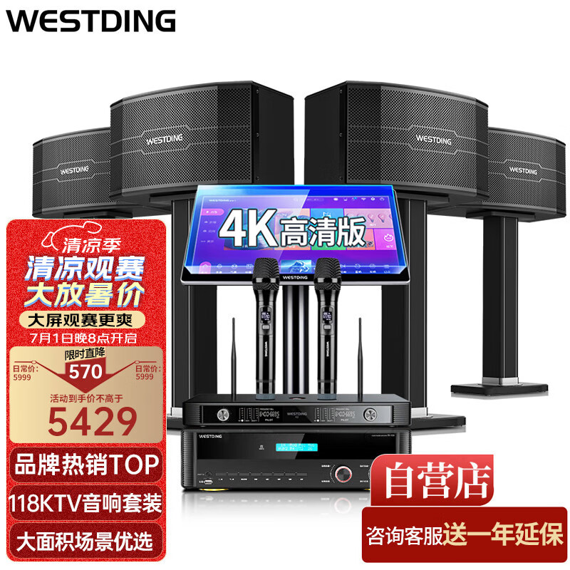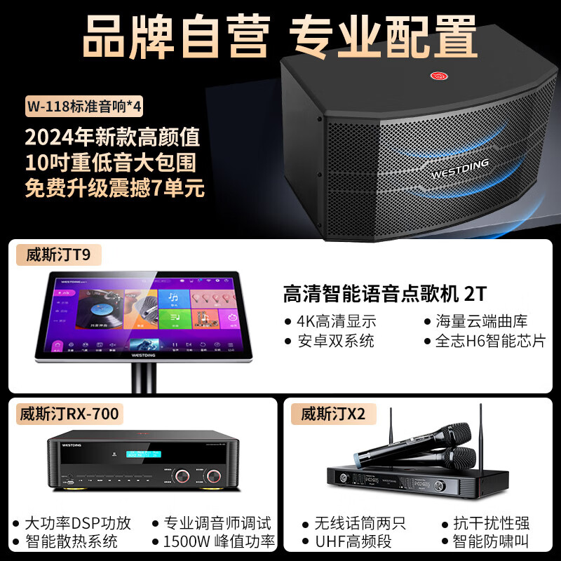 威斯汀家庭ktv音响套装点歌机一体唱歌全套设备家用客厅卡拉OK影院音箱118一拖四【大面积钜惠套装】-W7价格:5999.00元!