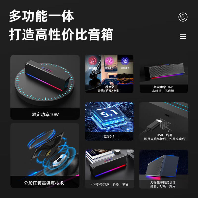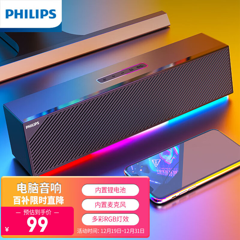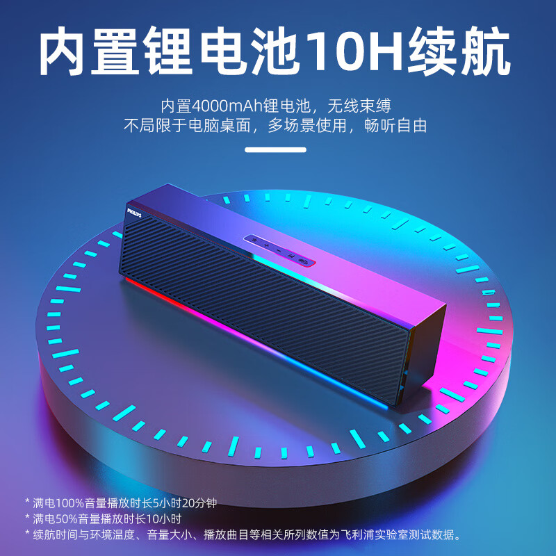 飞利浦(PHILIPS)SPA3810/93电脑音响桌面一体机台式蓝牙音箱笔记本低音炮无线家用电竞游戏音响内置锂电池价格:99.00元!