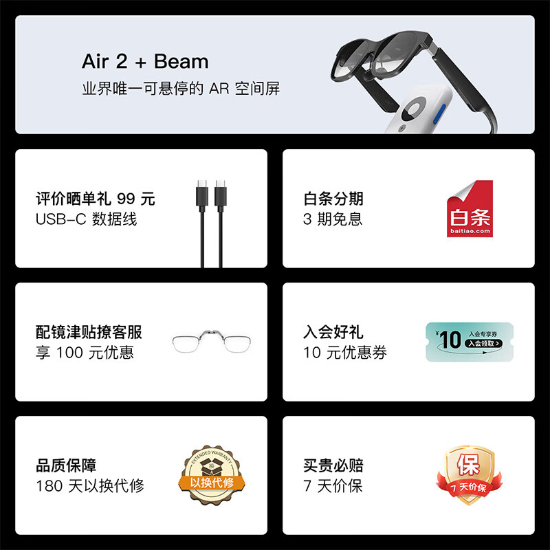 XREAL Air 2 智能AR眼镜 330英寸巨幕 3DoF空间悬停 非VR眼镜 Beam全适配套装 同vision pro投屏体验价格:3598.00元!