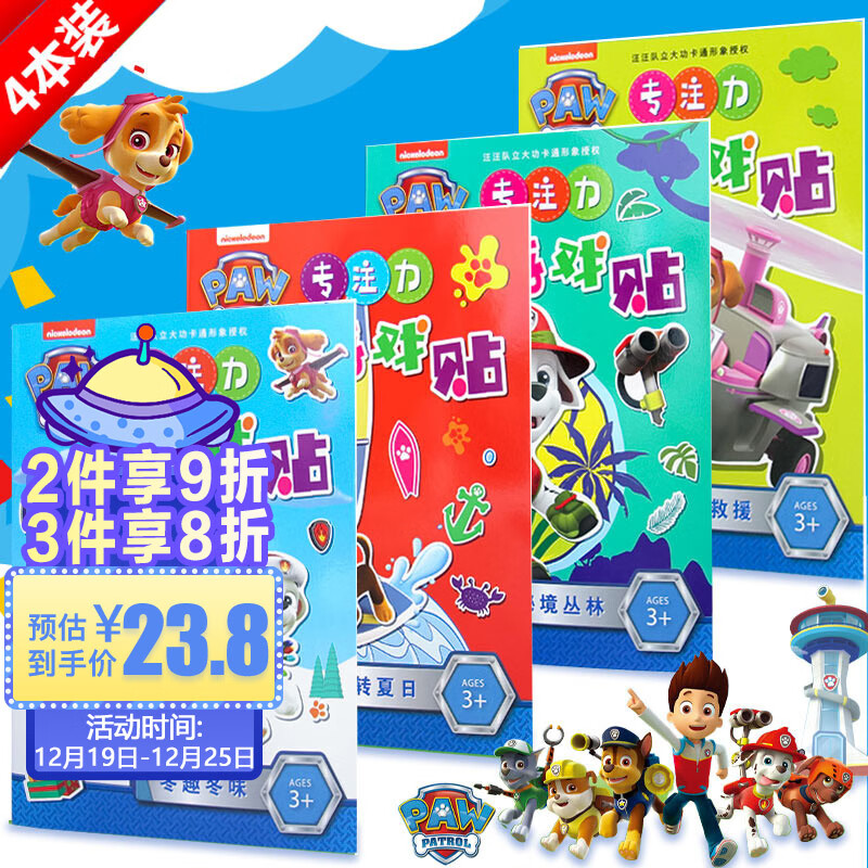 初格儿童贴纸本 汪汪队立大功卡通贴画专注力游戏贴纸书玩具圣诞礼物价格:29.80元!