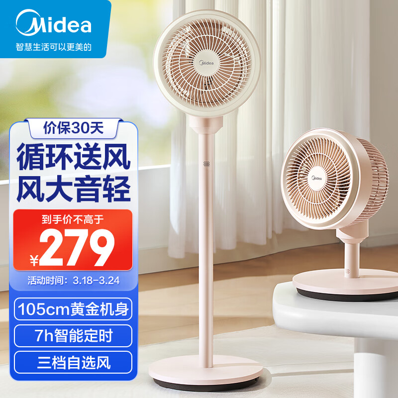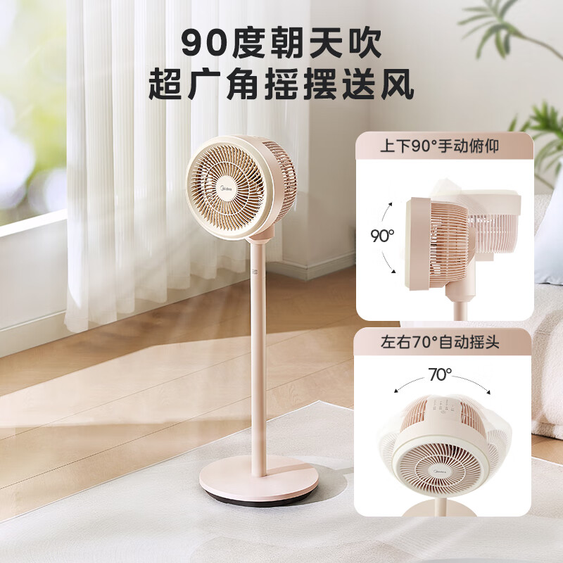 美的(Midea)【简约风】家用定时空气循环扇/摇头立式电风扇/轻音柔风节能落地扇/宿舍桌面小型风扇FGA24TYR价格:349.00元!
