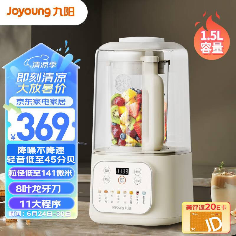 九阳(Joyoung)1.5升低音破壁机家用豆浆机 轻音45分贝 降噪榨汁机料理机 破壁机L15-P688价格:369.00元!