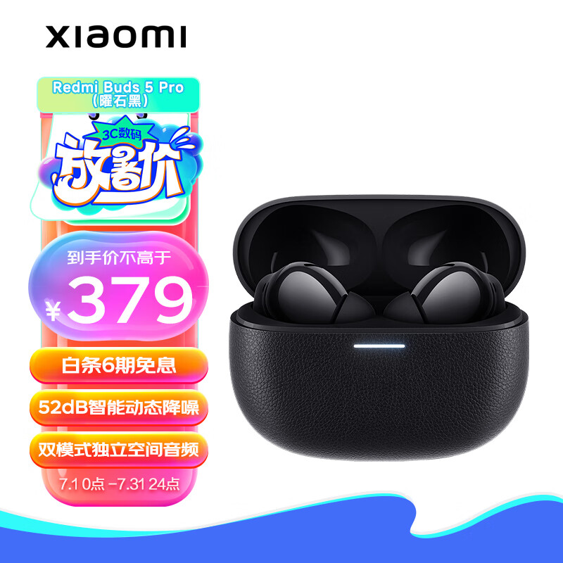 小米(MI)Redmi Buds 5 Pro 真无线降噪耳机 入耳式舒适佩戴 小米华为苹果手机通用(曜石黑)价格:369.00元!
