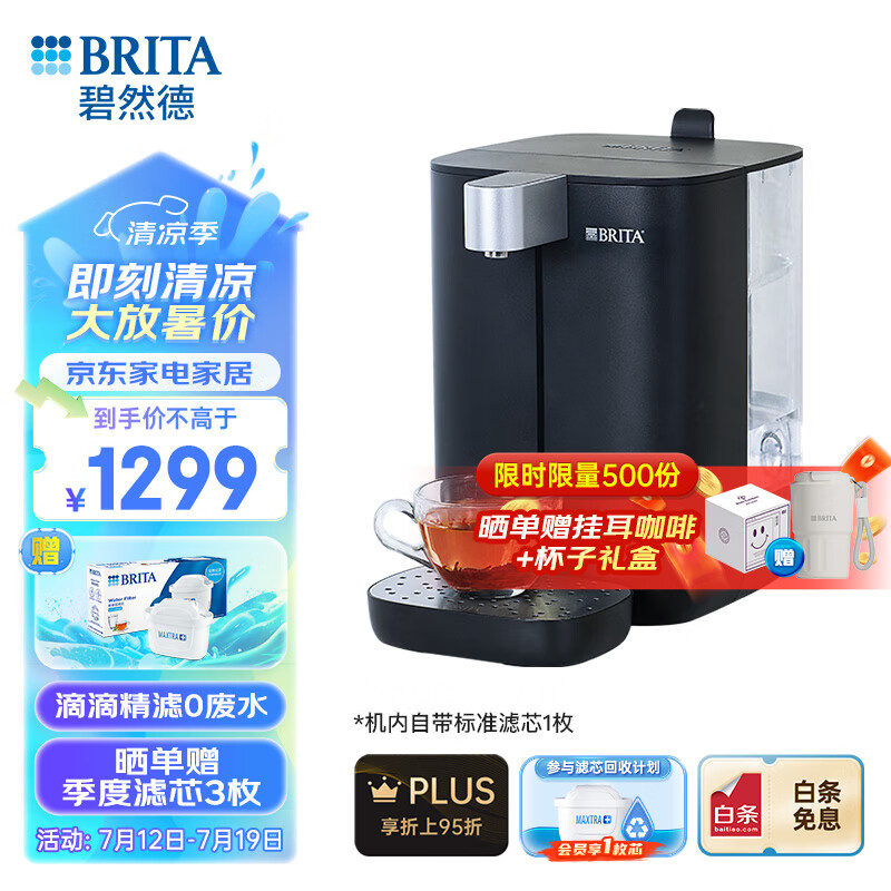 碧然德(BRITA) 台面净饮机即热直饮调温免安装台式净水器 黑色 智能即热饮水机价格:1419.00元!