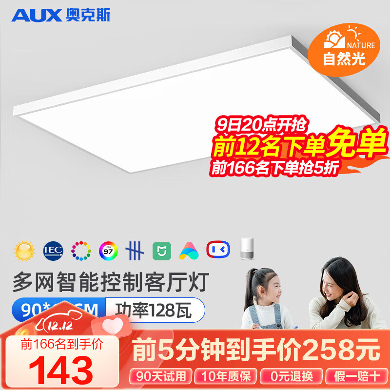 奥克斯(AUX) 客厅灯卧室书房全光谱健康照明吸顶灯全屋智能儿童房模拟自然光 (多网智控/97高显)128瓦/25-40㎡价格:410.00元!