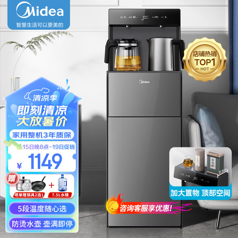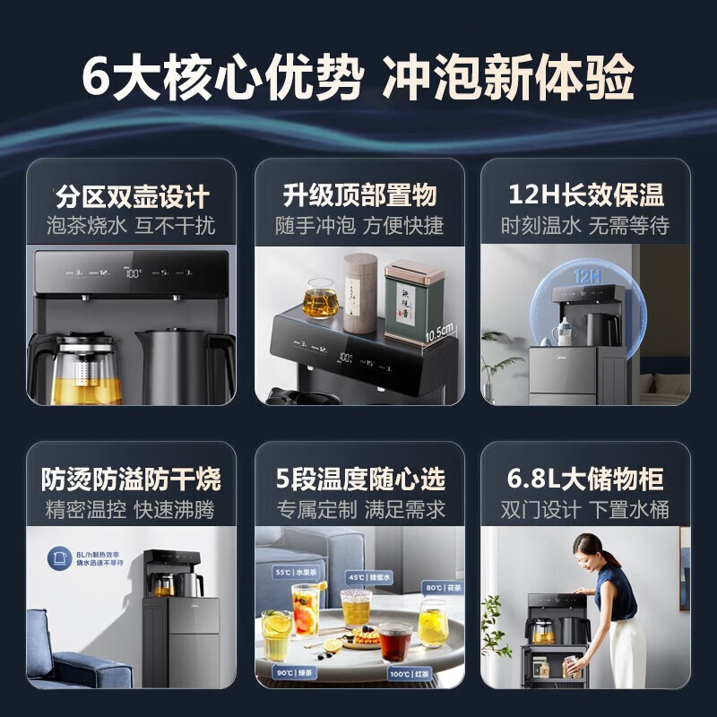 美的(Midea)茶吧机饮水机家用一体柜高端客厅办公室下置式智能自动上水多段控温 YCR-2362 温热型价格:1299.00元!
