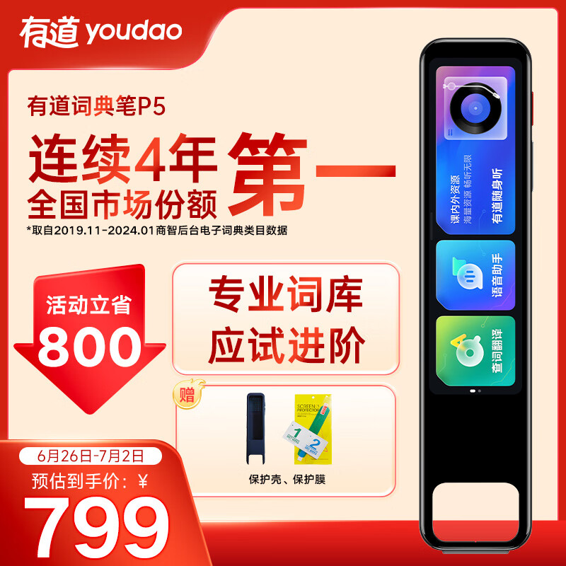 有道网易有道词典笔P5专业版 英语学习机点读笔翻译笔神器 电子词典单词笔 扫读笔 百种语言翻译器价格:799.00元!