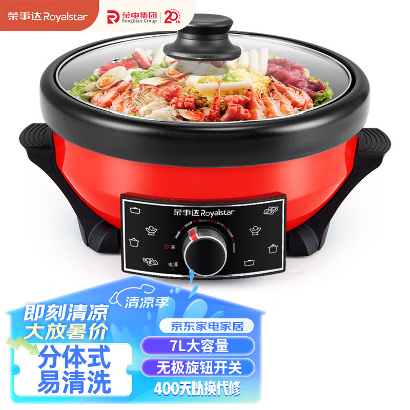 荣事达(Royalstar)电火锅分体式7L大容量多功能电热锅电煮锅电炒锅RHG-70DL价格:219.00元!