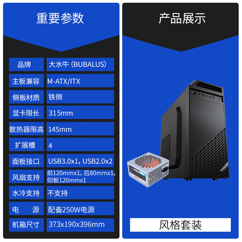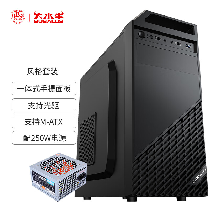 大水牛(BUBALUS)风格+劲强250W商务办公台式电脑主机机箱电源套装(支持M-ATX/U3/电源上置/手提式)价格:134.00元!
