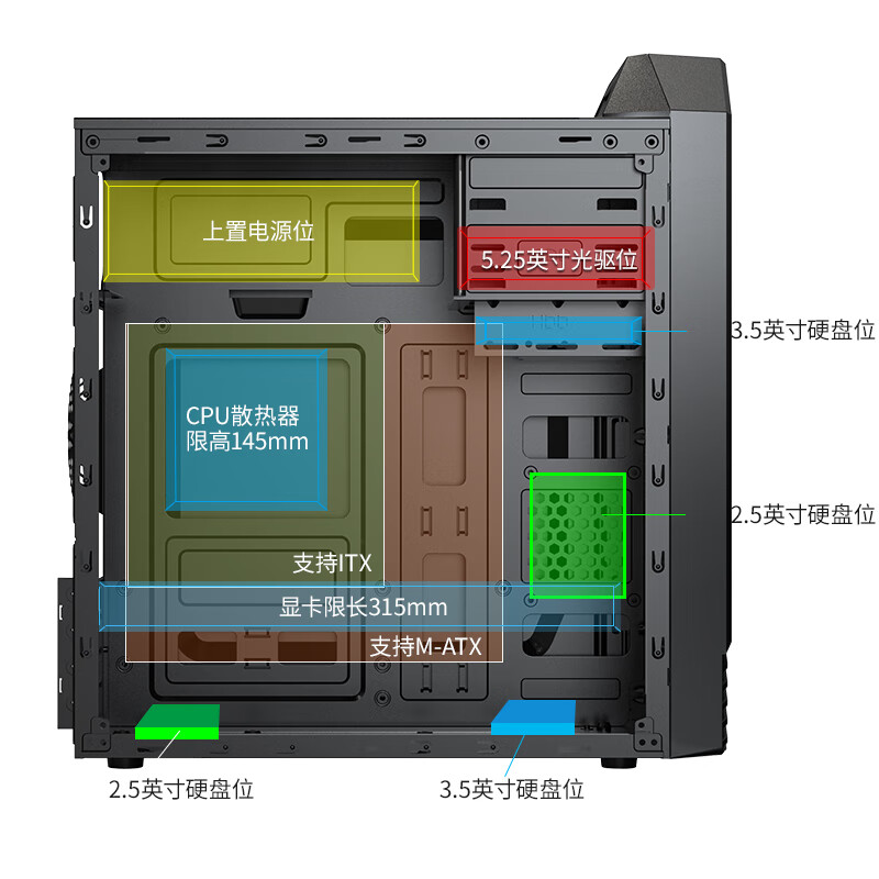 支持主板:M-ATX(紧凑型),MINI-ITX(迷你型)