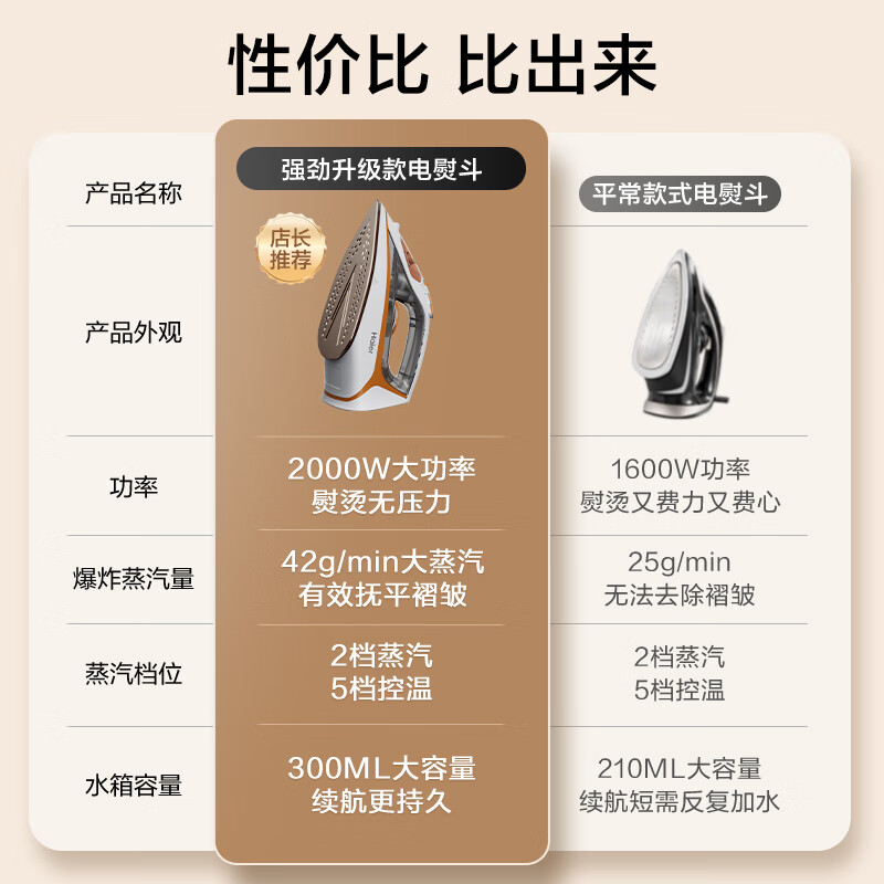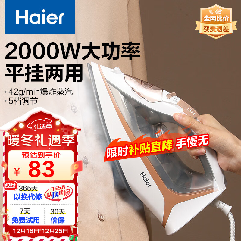 海尔(haier)电熨斗家用蒸汽熨斗2000W大功率 熨烫机 小型手持迷你电烫斗 挂烫机 HY-Y2026价格:83.00元!