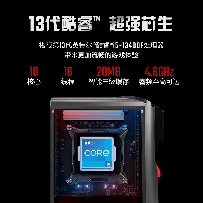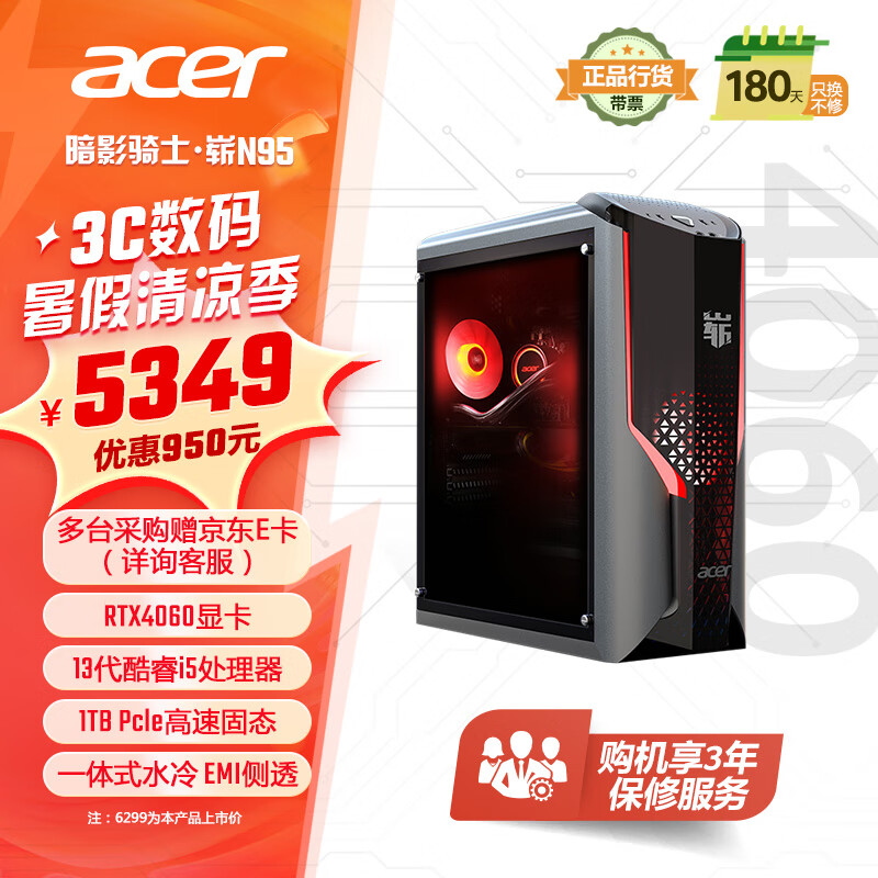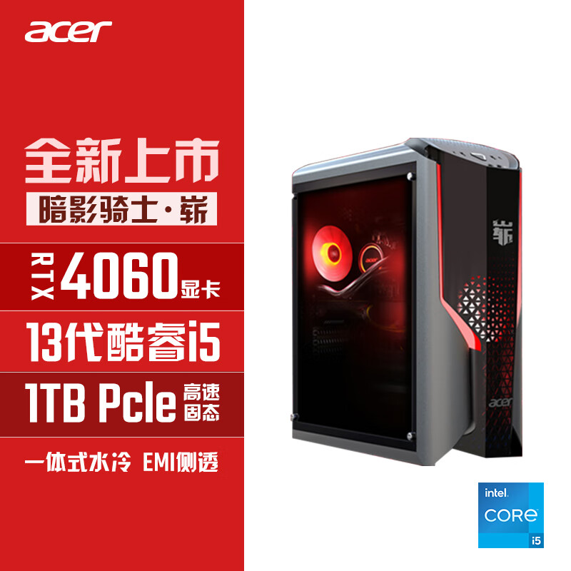 宏碁(acer)暗影骑士·崭 N95游戏电脑台式机(酷睿13代i5 16G+1TB固态硬盘 RTX4060 EMI侧透 一体式水冷散热)价格:6299.00元!