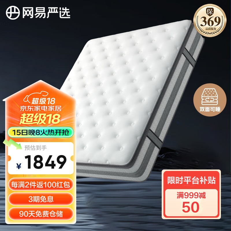 网易严选AB面弹簧床垫1.5*2米 进口乳胶床垫 抑菌防螨独袋弹簧 旗舰款Max价格:2299.00元!