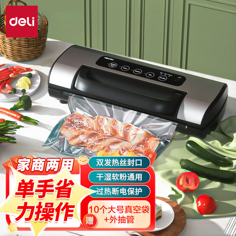 得力(deli)省力开合 单手操作真空包装机 过膜机 全自动抽真空封口机食品保鲜真空机 商用家用14892价格:459.00元!