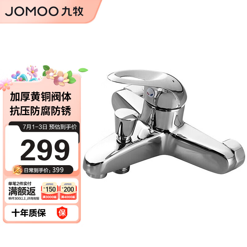 九牧(JOMOO) 单把软管式三联淋浴器 混水阀 淋浴龙头 带下出水3577-050价格:349.00元!