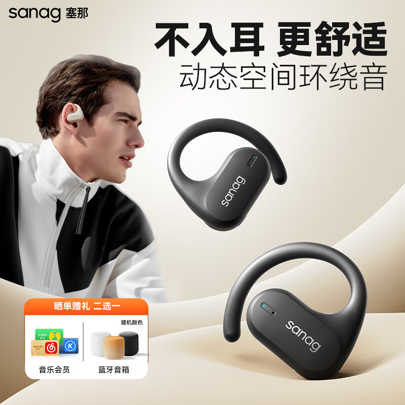 SANAG塞那 Z7 骨传导概念蓝牙耳机开放式挂耳式不入耳挂耳式运动通话降噪夹耳夹式耳机适用华为 黑色价格:218.00元!