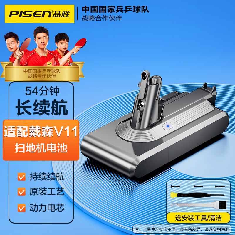 品胜(PISEN)戴森Dyson吸尘器V11锂电池 可充电长续航动力电芯 适配SV14/V11 Absolute/V11 Fluffy等 4000mAh价格:439.00元!