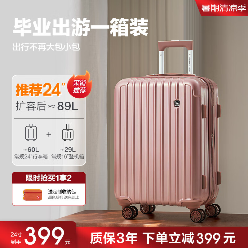 爱华仕行李箱女拉杆箱男旅行箱大容量密码箱24英寸可扩展学生箱玫瑰金价格:798.00元!