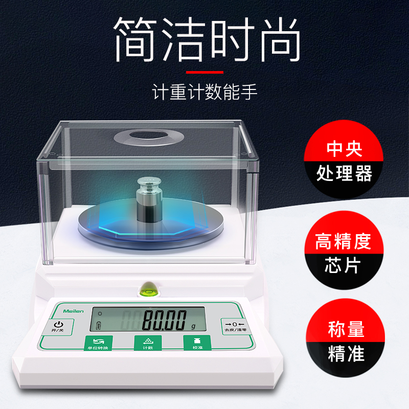 Meilen 分析电子天平0.01g电子秤0.001g克称精准电子称高精度0.1g珠宝秤实验室秤 MTB2000g/0.01(配500g砝码2个)价格:418.00元!
