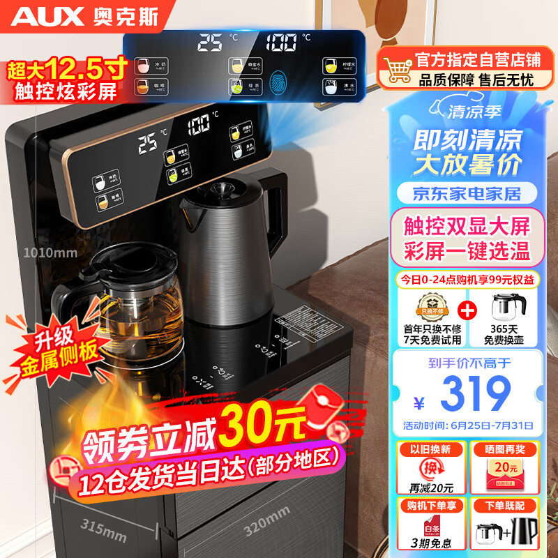 奥克斯(AUX)茶吧机 家用下置桶饮水机智能遥控大屏幕【一键选温】触控双显大屏 温热型YCB-27价格:349.00元!