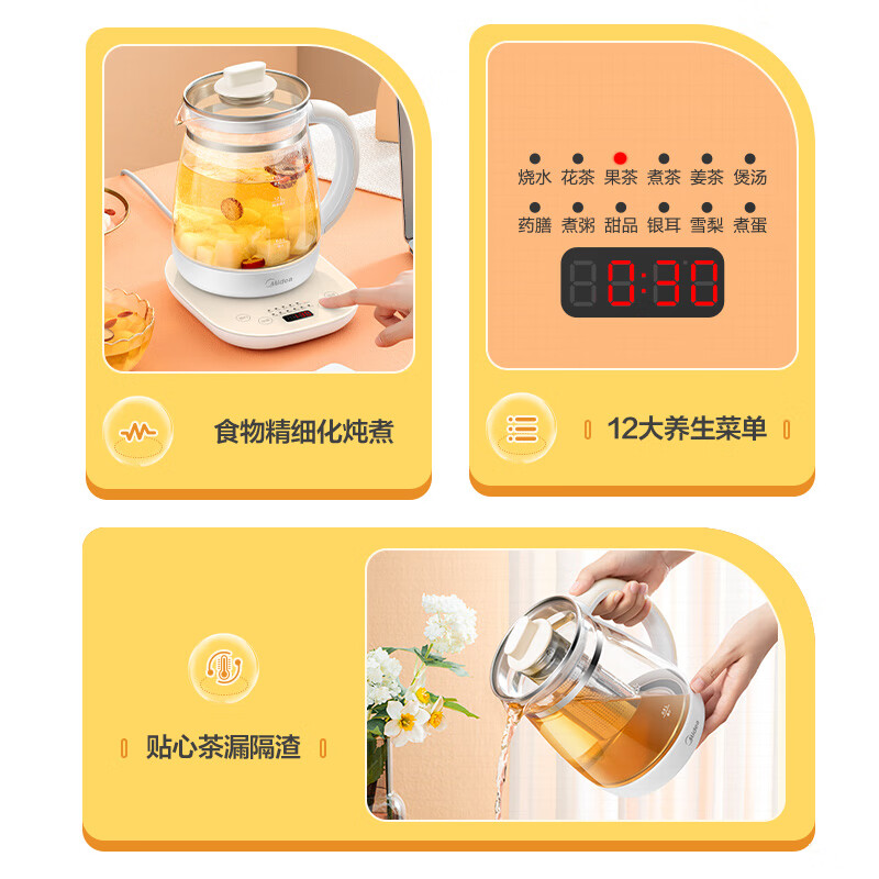 美的(Midea)智能养生壶 办公室烧水壶电热水壶 1.5L大容量煮茶壶 玻璃面板 多段控温保温煮茶器 MK-YSNC1501价格:119.00元!
