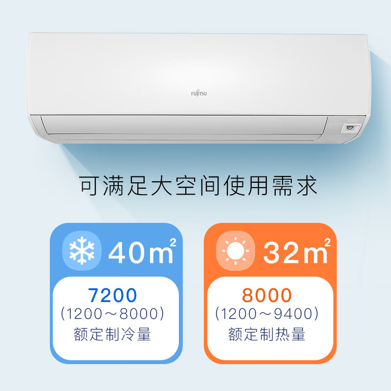富士通 26-40㎡适用 新2级能效 3匹 变频挂机 大风量 以旧换新 壁挂式空调ASQG24KMCA (KFR-72GW/Bpkma)价格:7299.00元!
