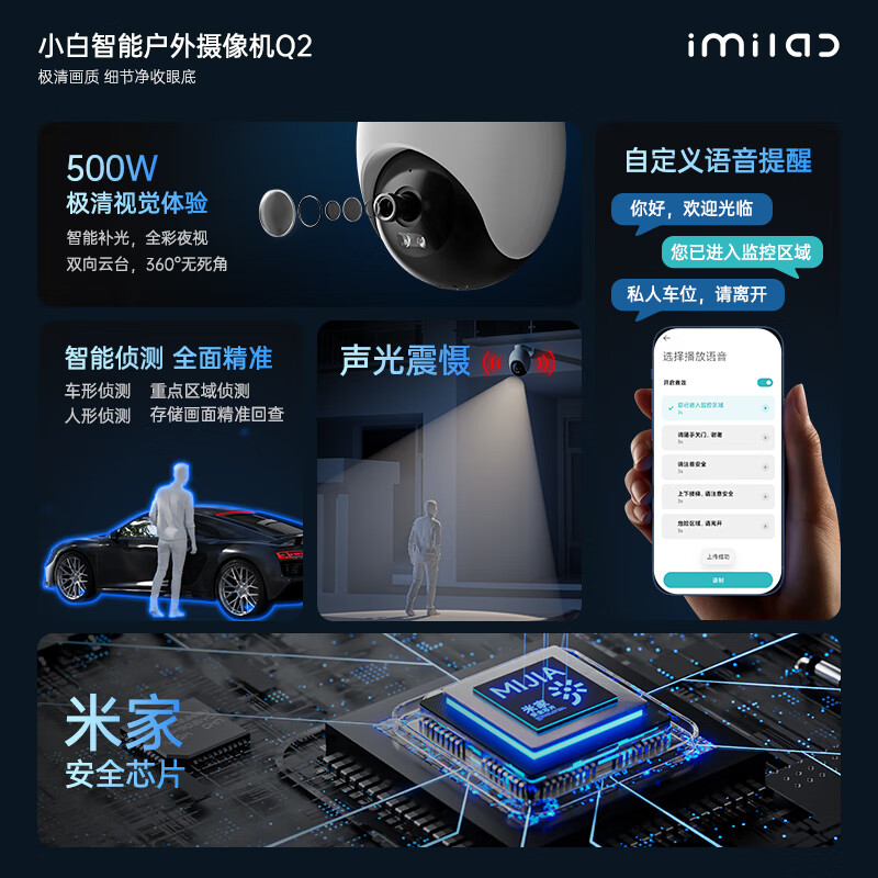 小白 Q2已接入米家摄像头室外 500W像素监控网络摄像机 防水防尘手机远程AI人车侦测全彩夜视价格:249.00元!