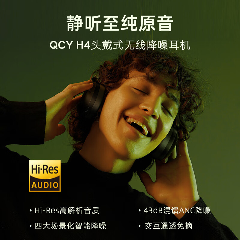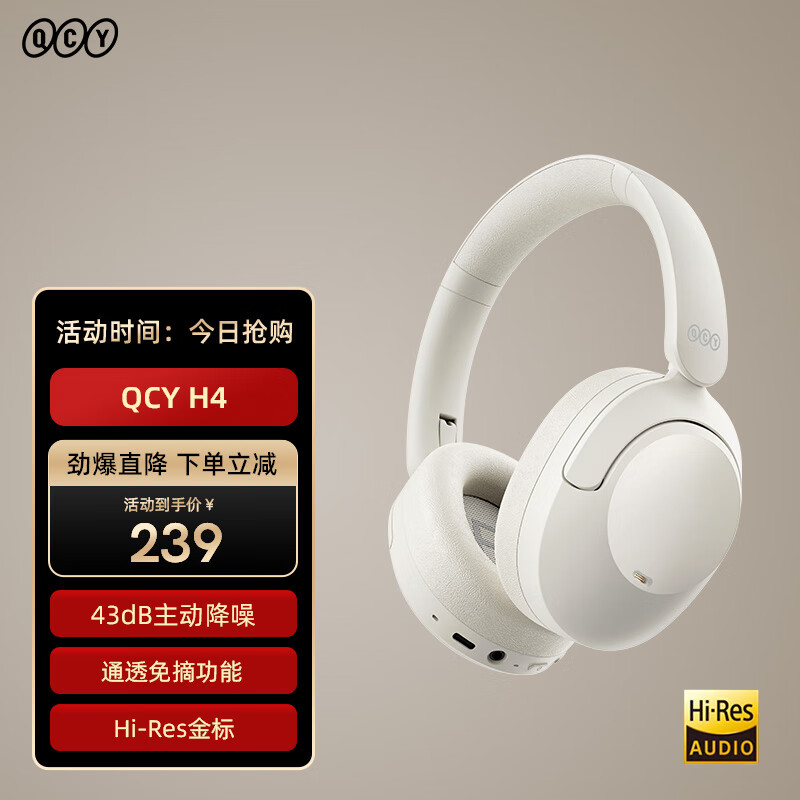 QCY H4 主动降噪-43dB头戴蓝牙耳机重低音无线耳麦手机听力超长待机适用于全手机 白色价格:239.00元!
