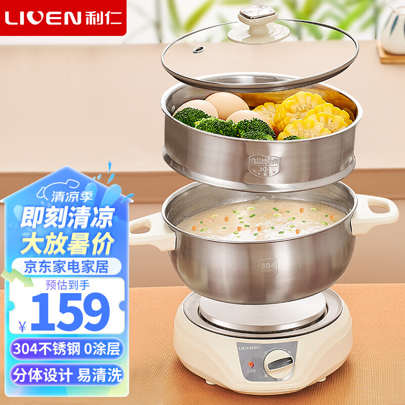 利仁(Liven)电煮锅蒸煮锅家用分体电火锅火锅专用锅多功能电热锅多用途锅宿舍泡面锅小火锅2升带蒸屉DHG-180Z价格:159.00元!