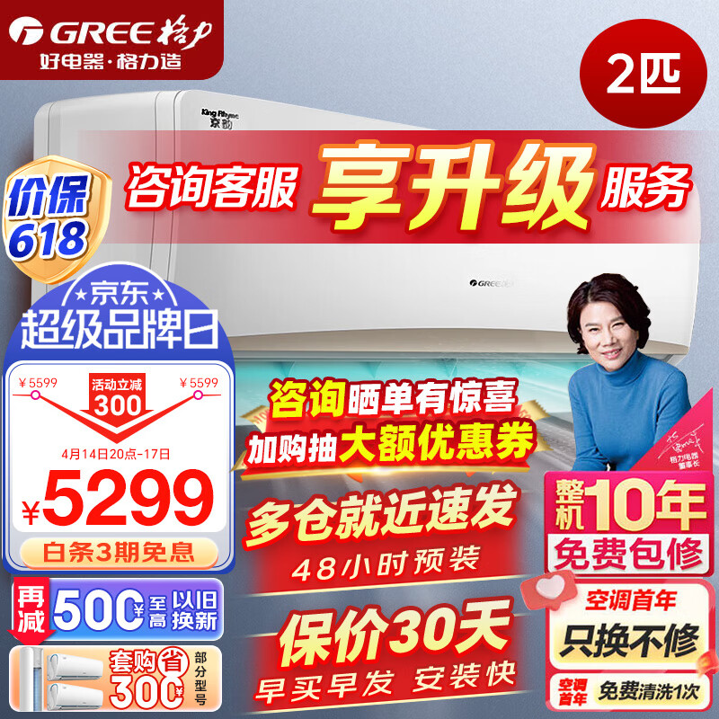 格力(GREE)2匹空调挂机 京韵 新能效变频冷暖 大风量 WiFi 壁挂式客厅卧室商铺空调KFR-50GW/NhIe3BAj[推荐]价格:5299.00元!